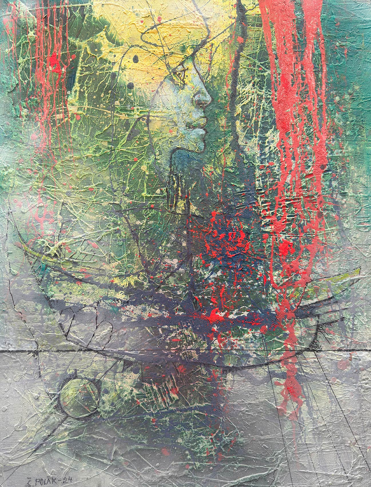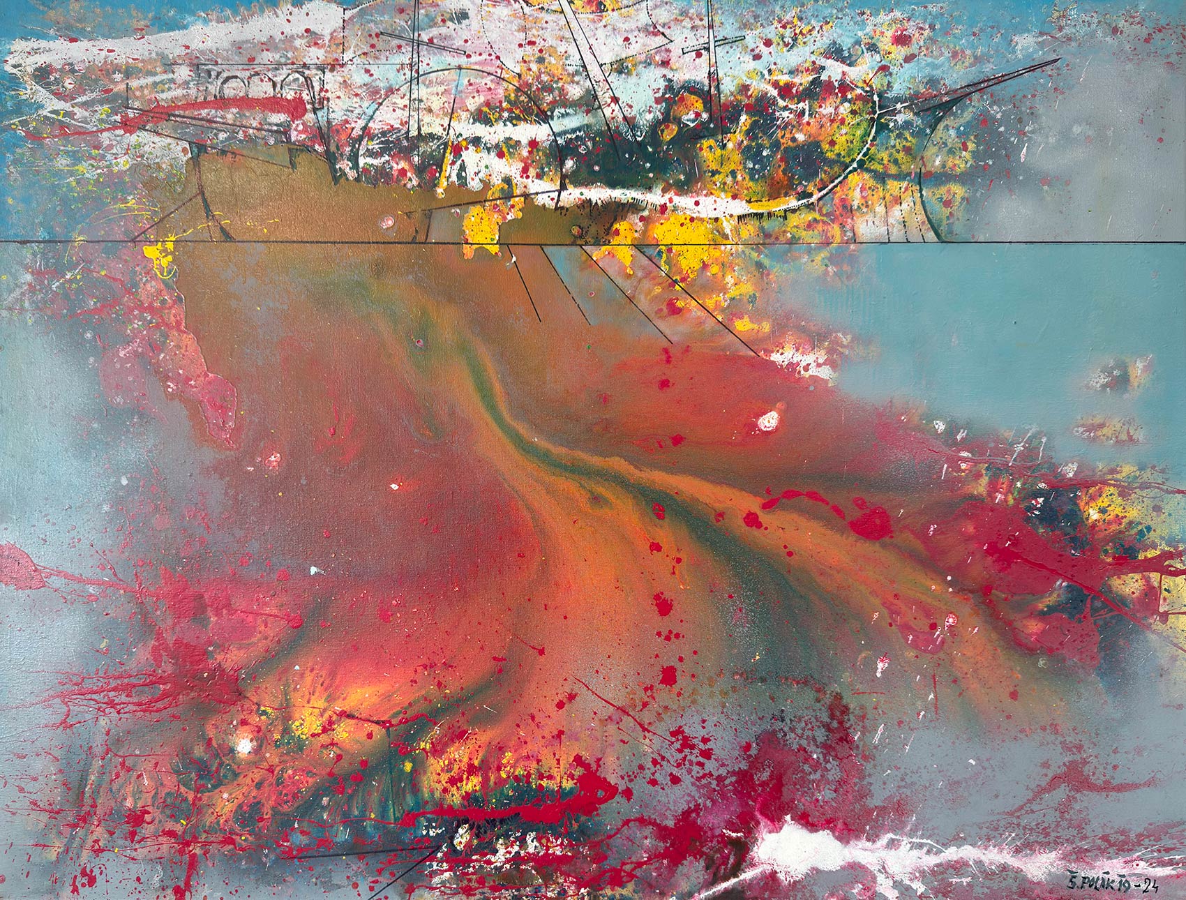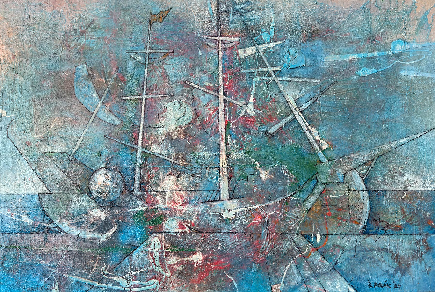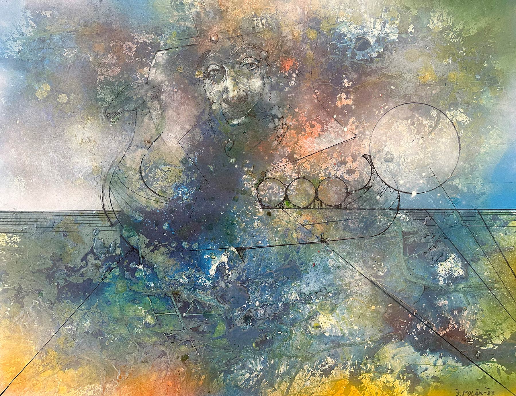 27. Loď návratov II., 2023, akryl-olej, 100 cm x 150 cm