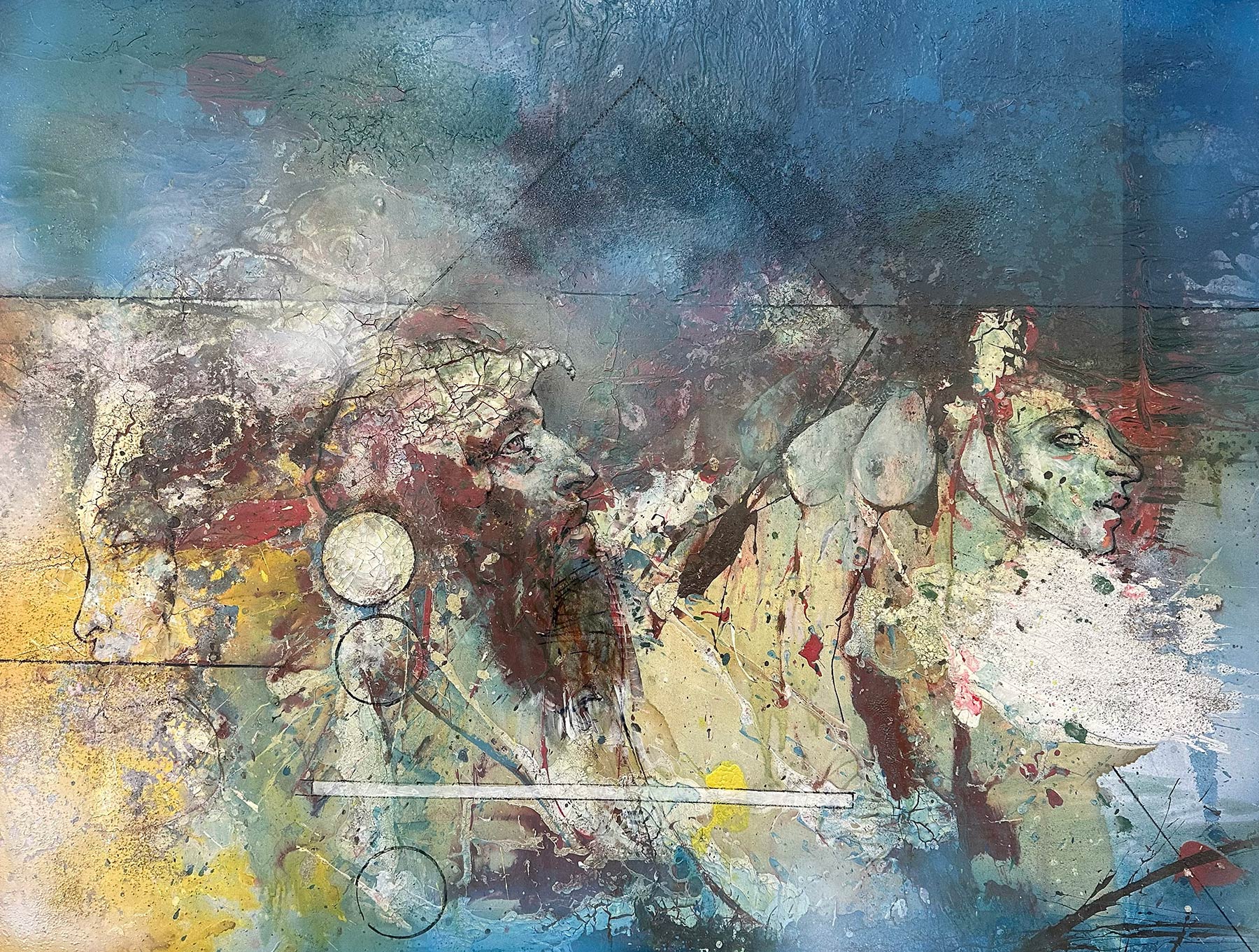 58. Hniezdo... , 2024, akryl-olej, 100 cm x 130 cm