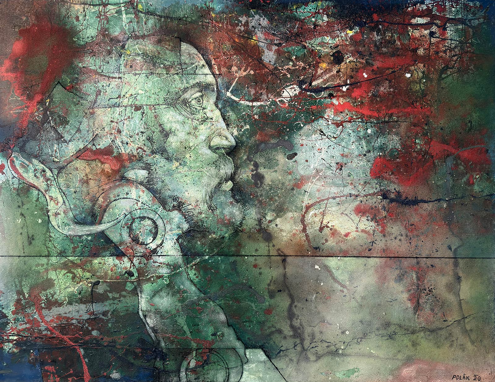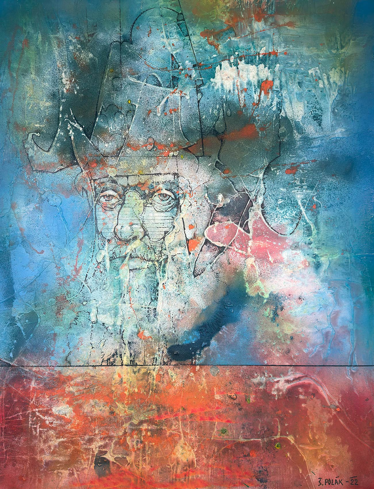 69. Starý básnik, 2021, akryl, 100 cm x 130 cm