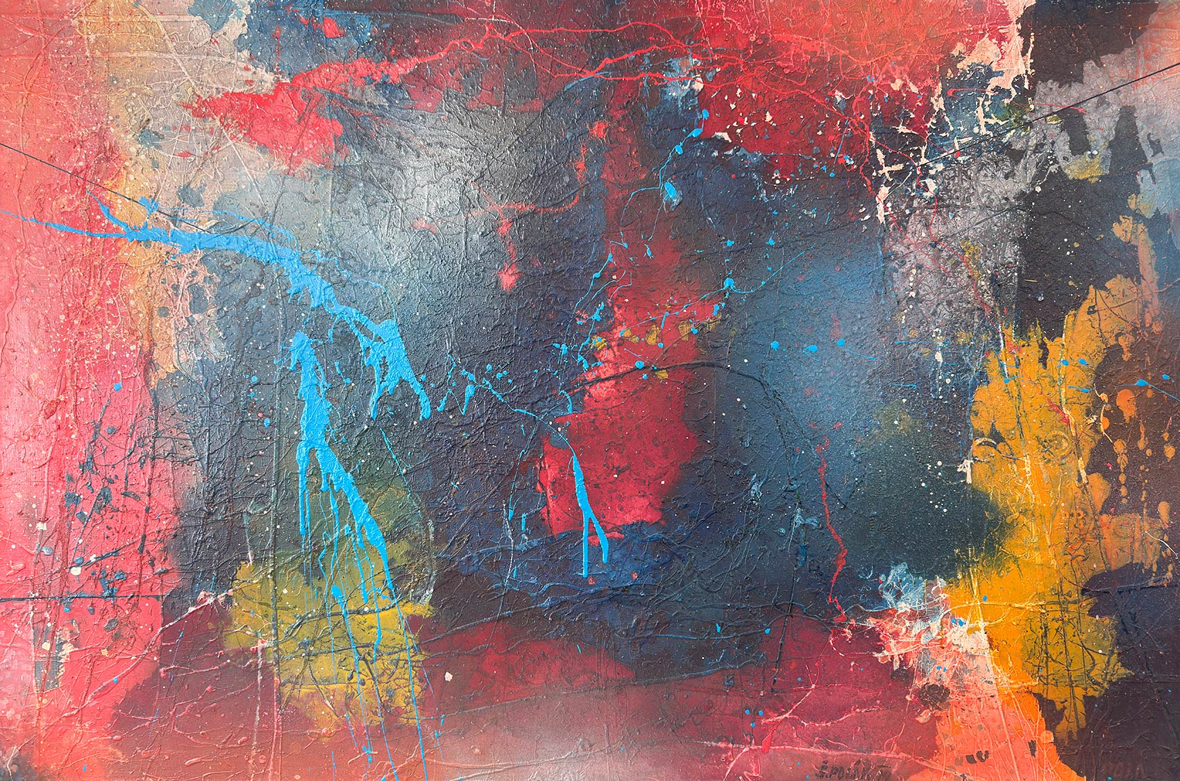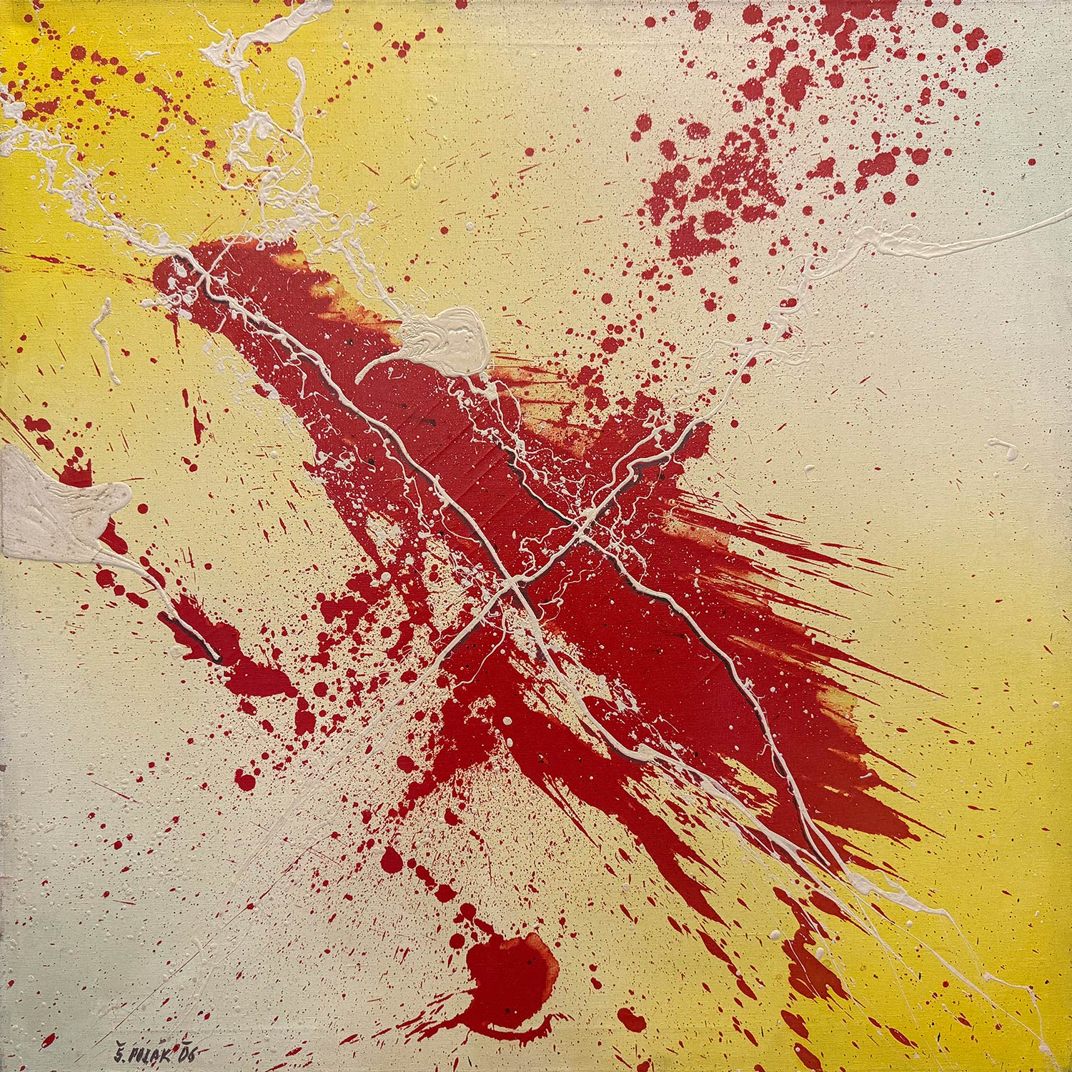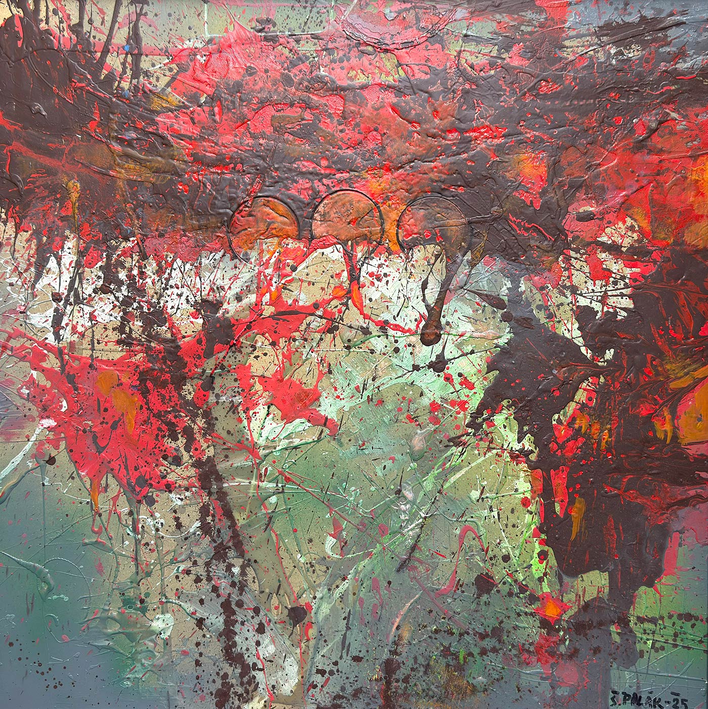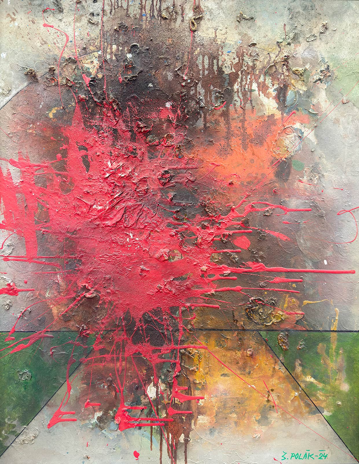 102. Explózia, 2024, akryl-olej, 105 cm x 86 cm