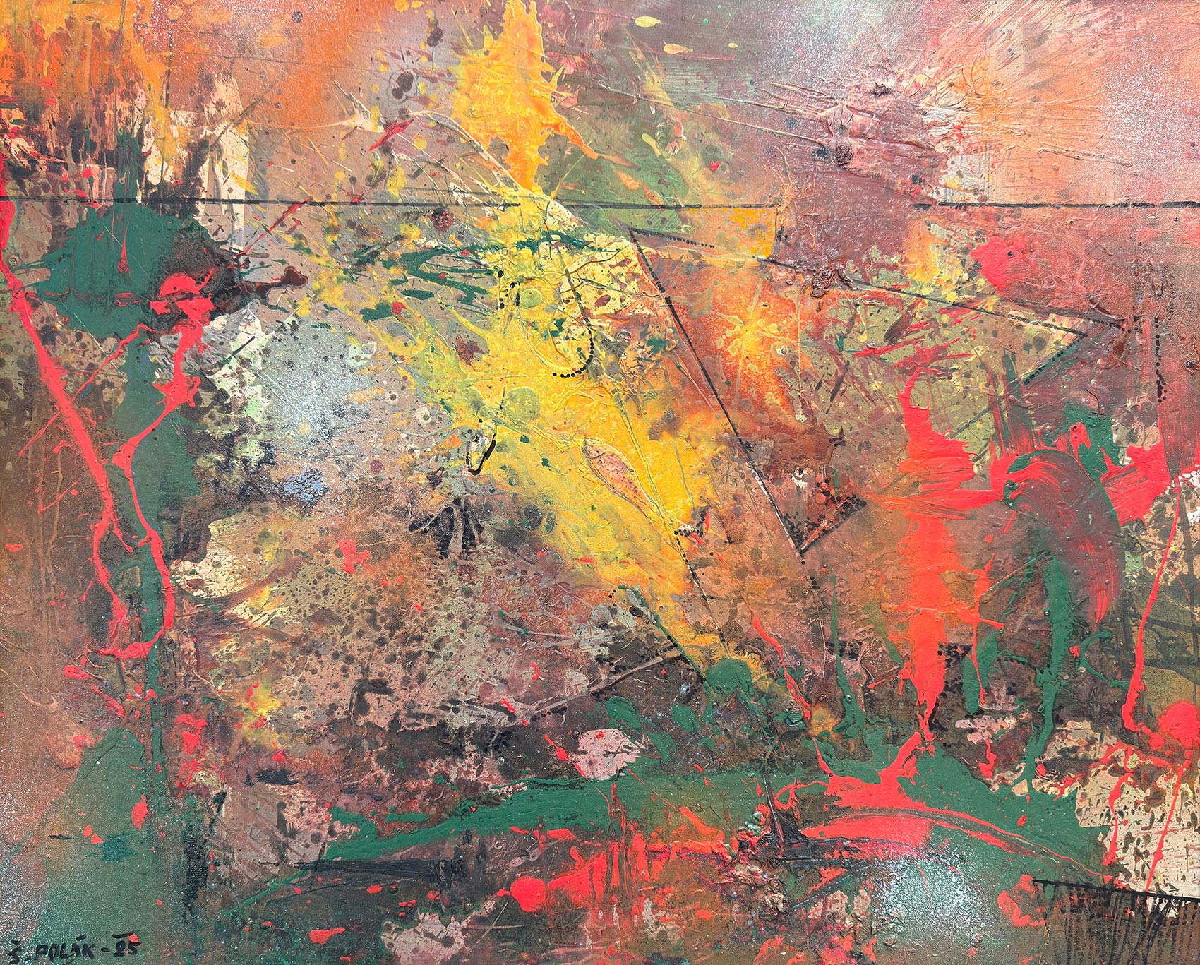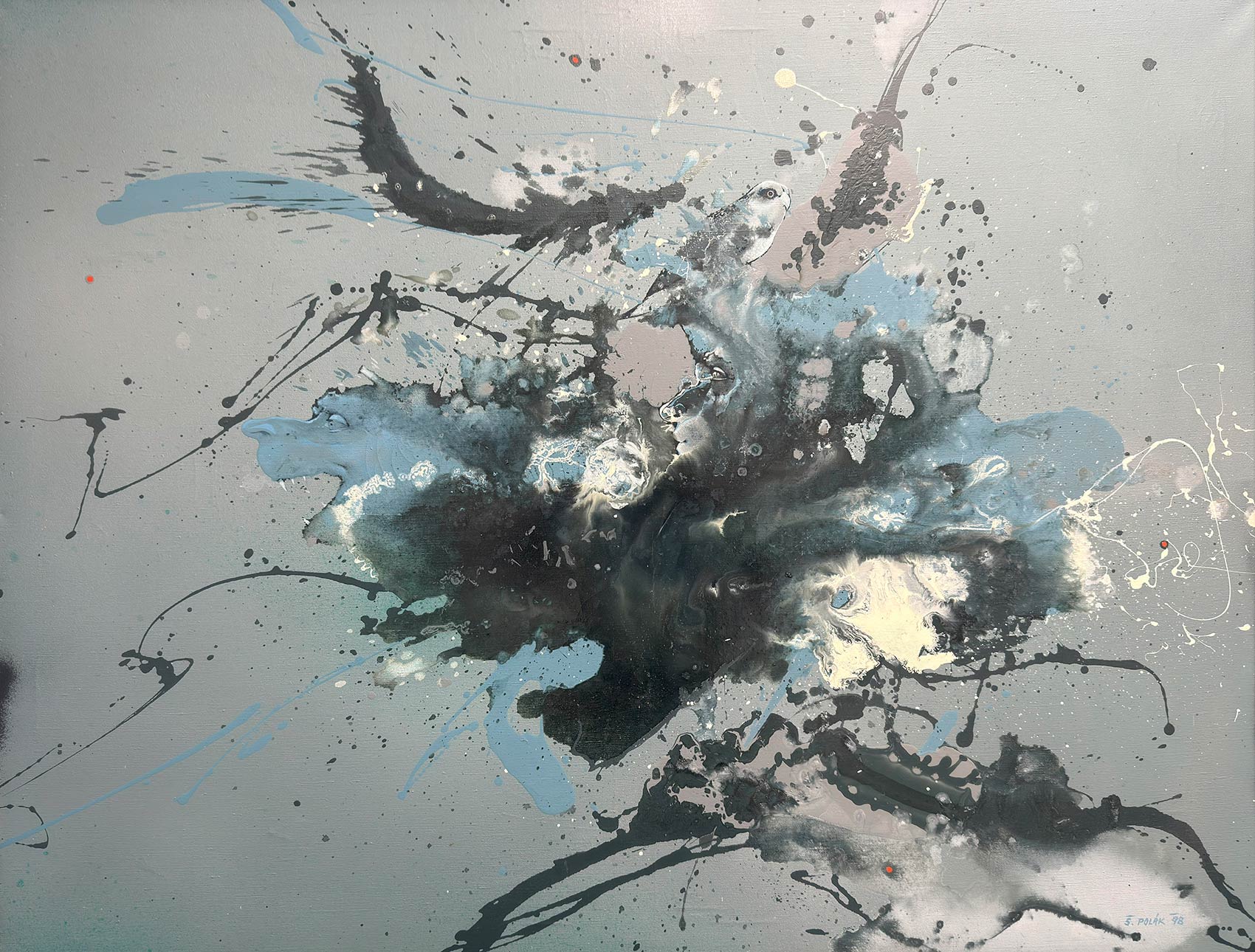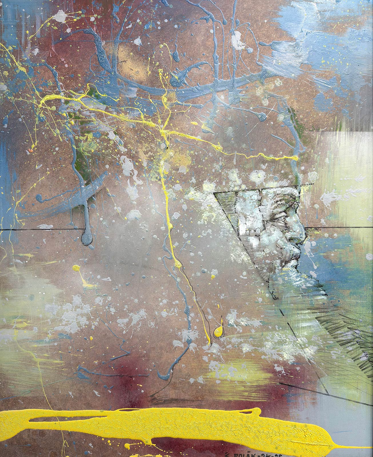 102. Explózia, 2024, akryl-olej, 105 cm x 86 cm