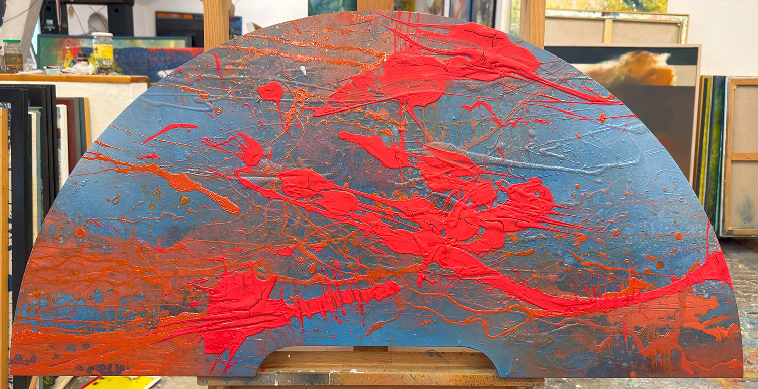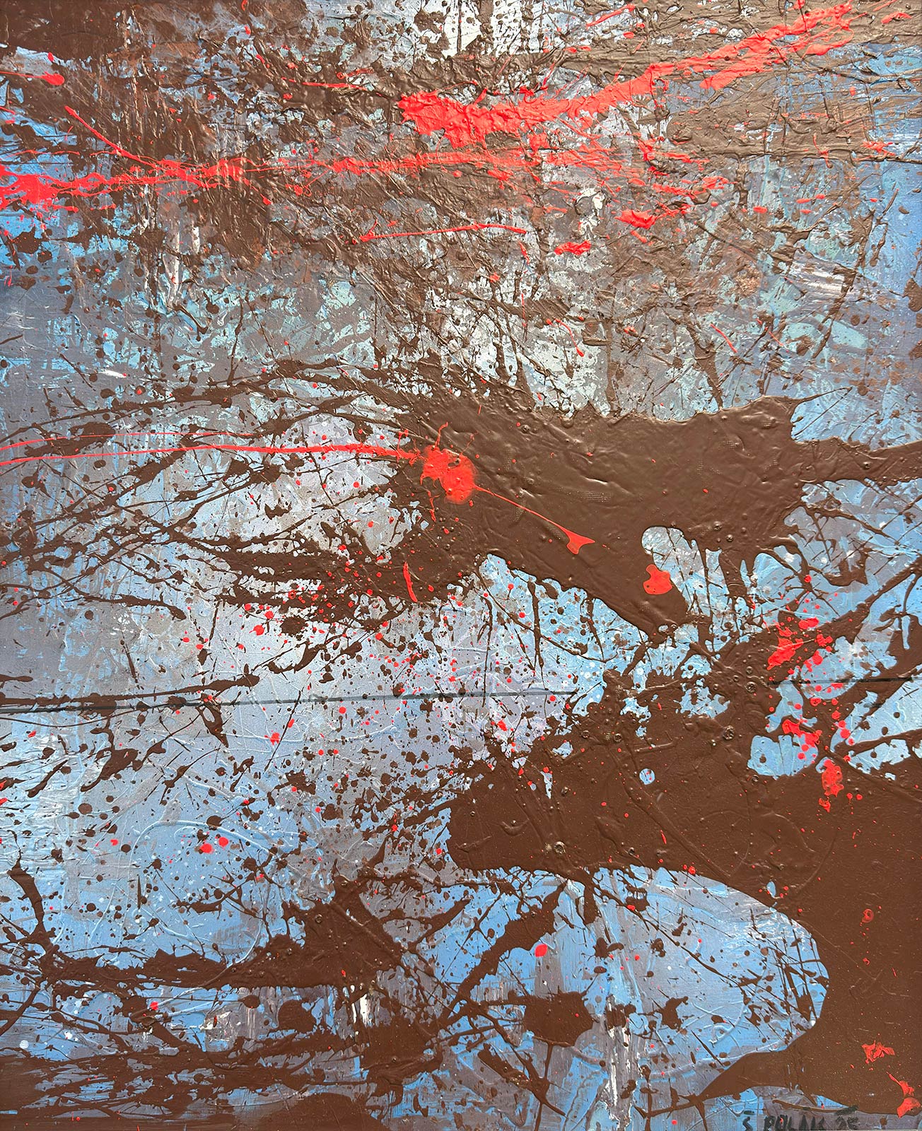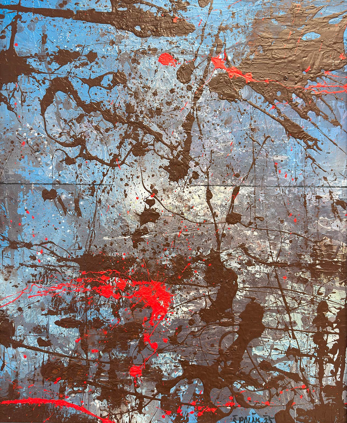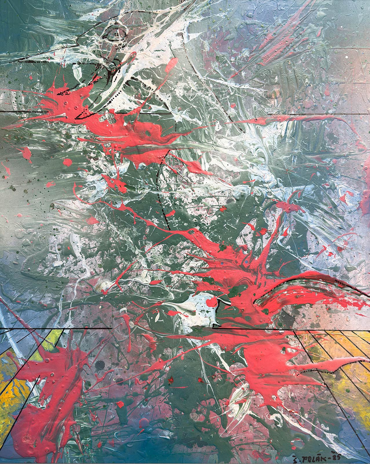 102. Explózia, 2024, akryl-olej, 105 cm x 86 cm