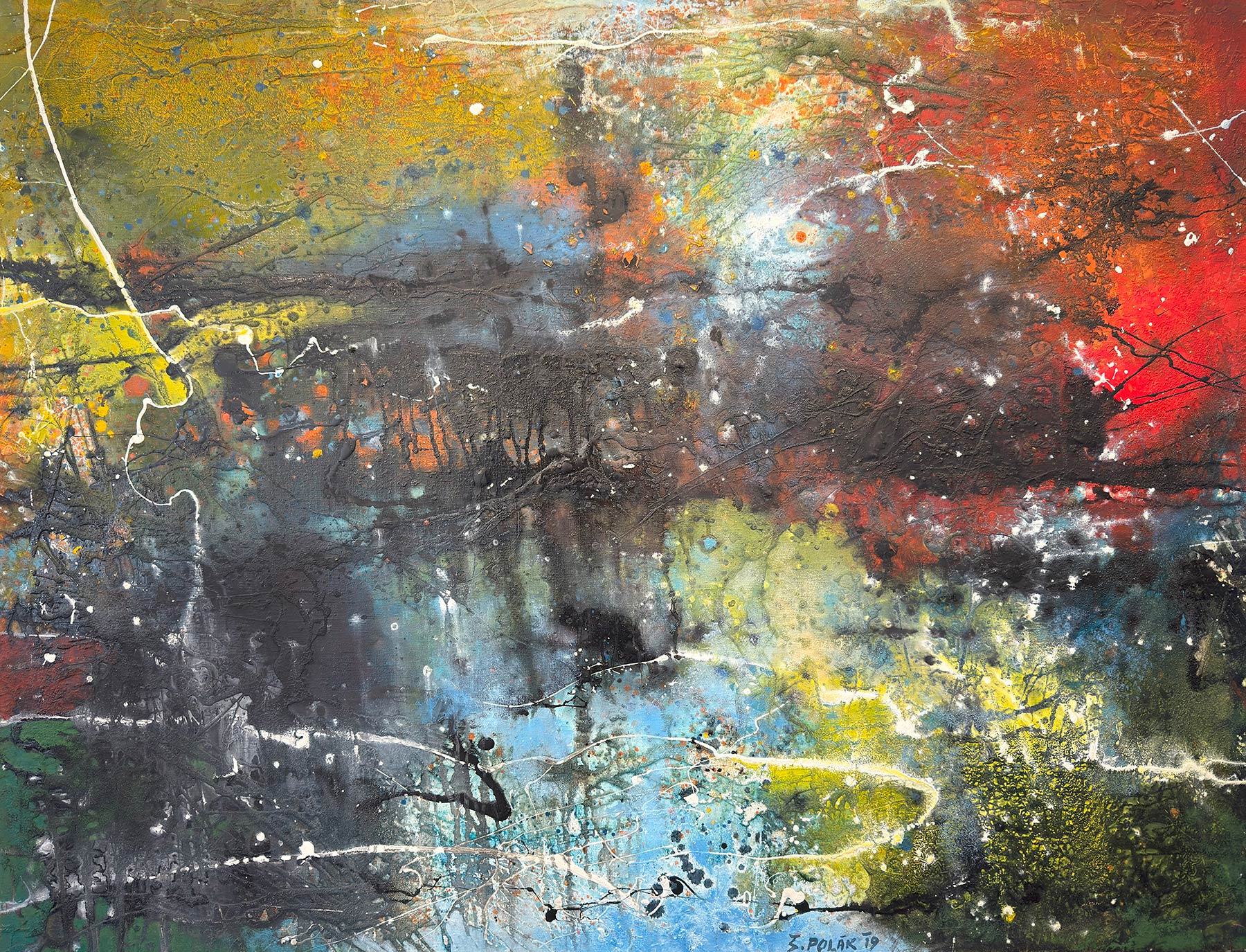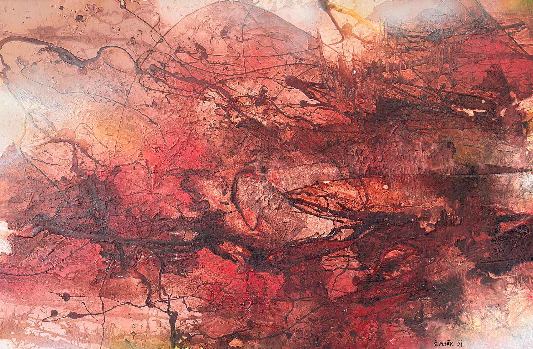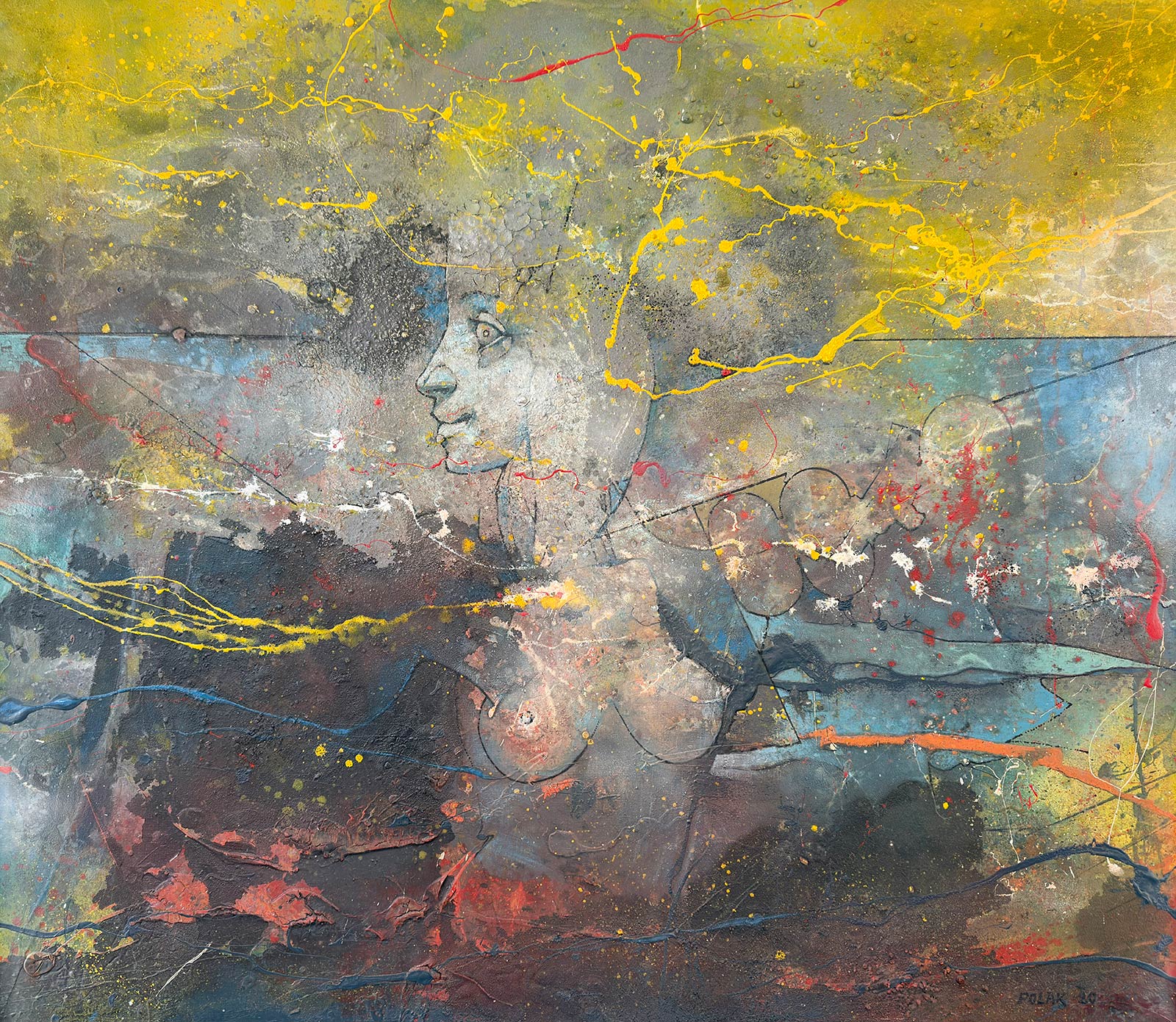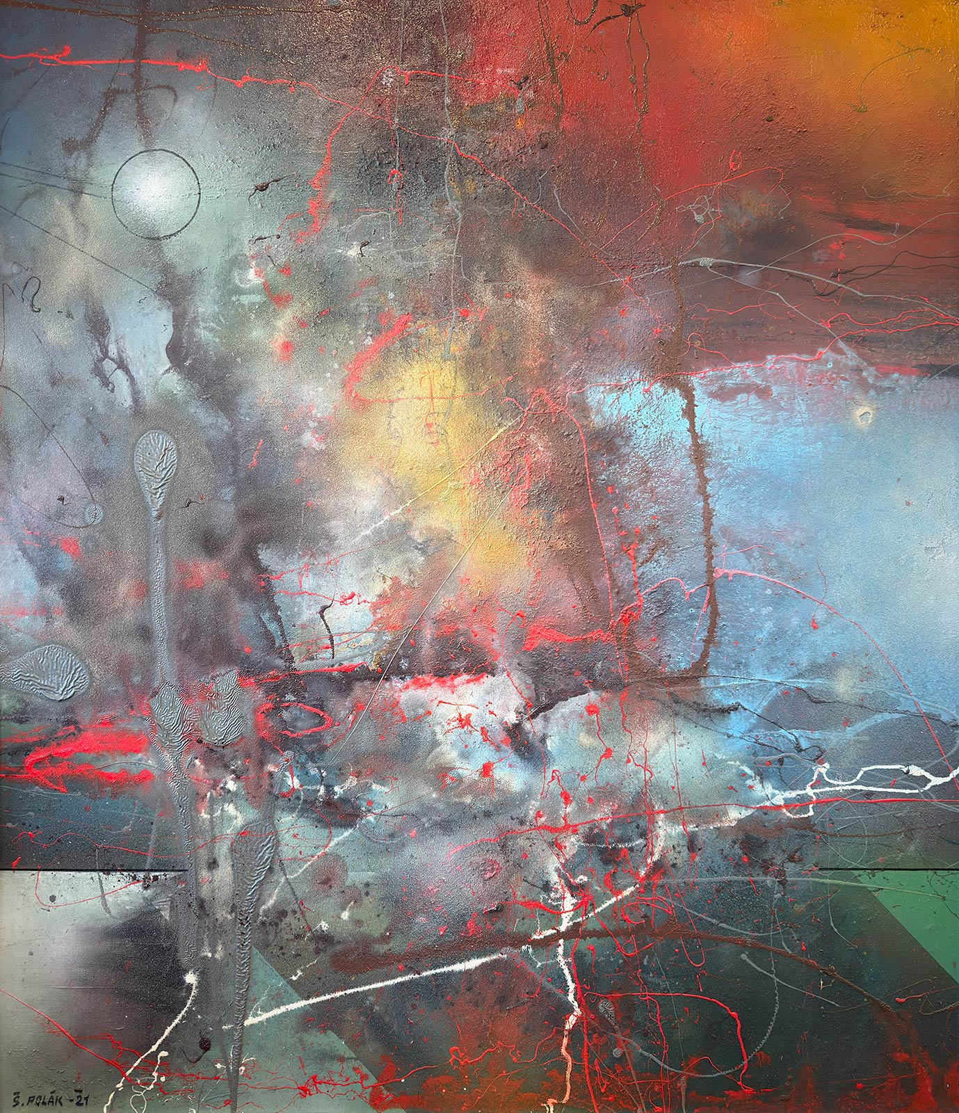105. Čo sa v nás deje..., 2021, akryl-olej, 82 cm x 100 cm