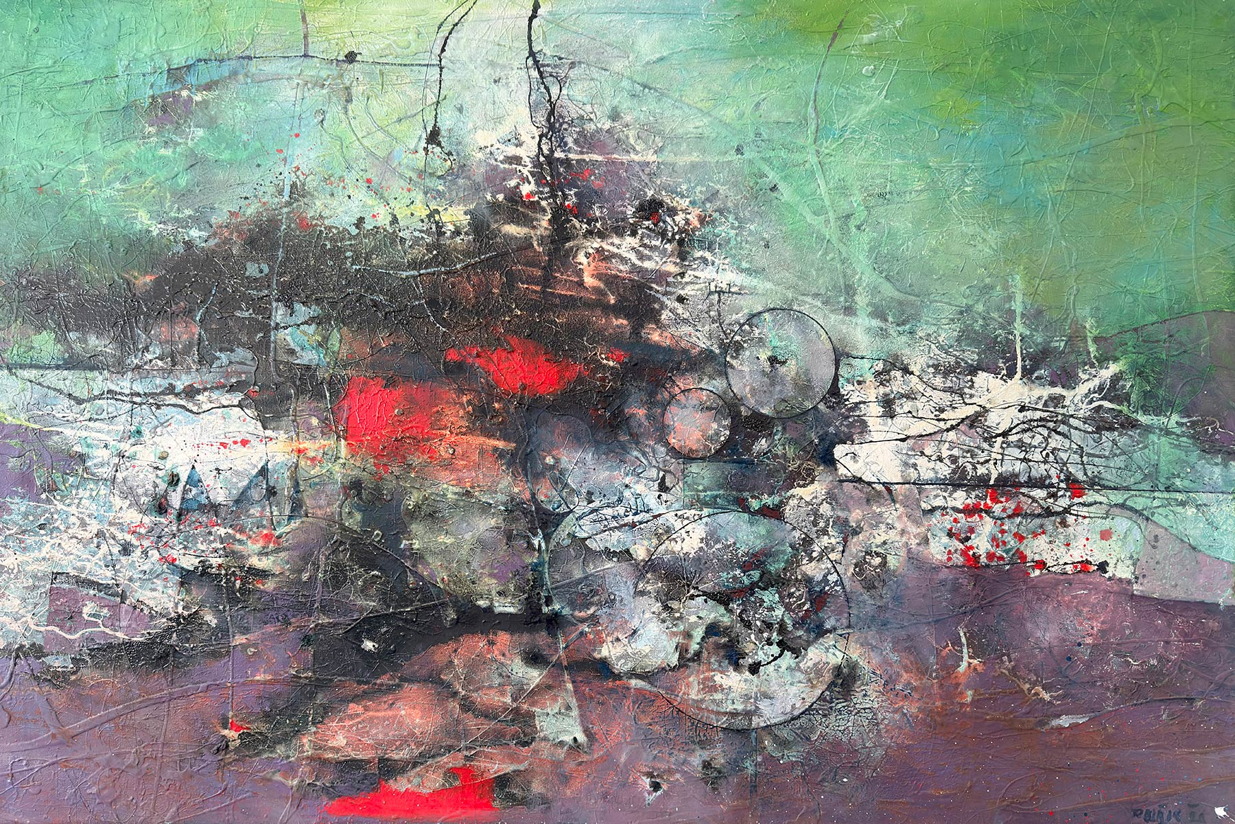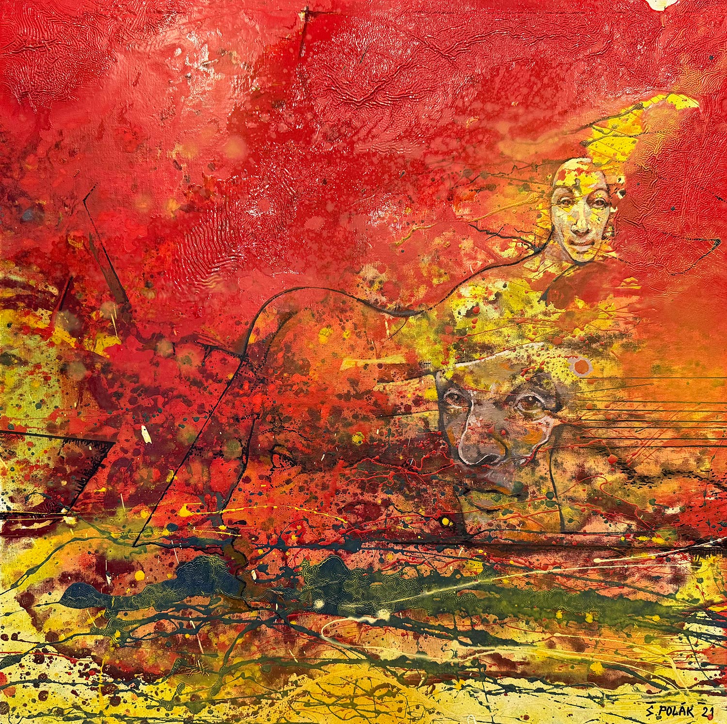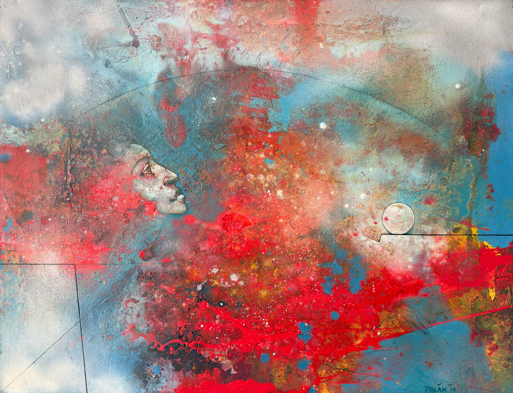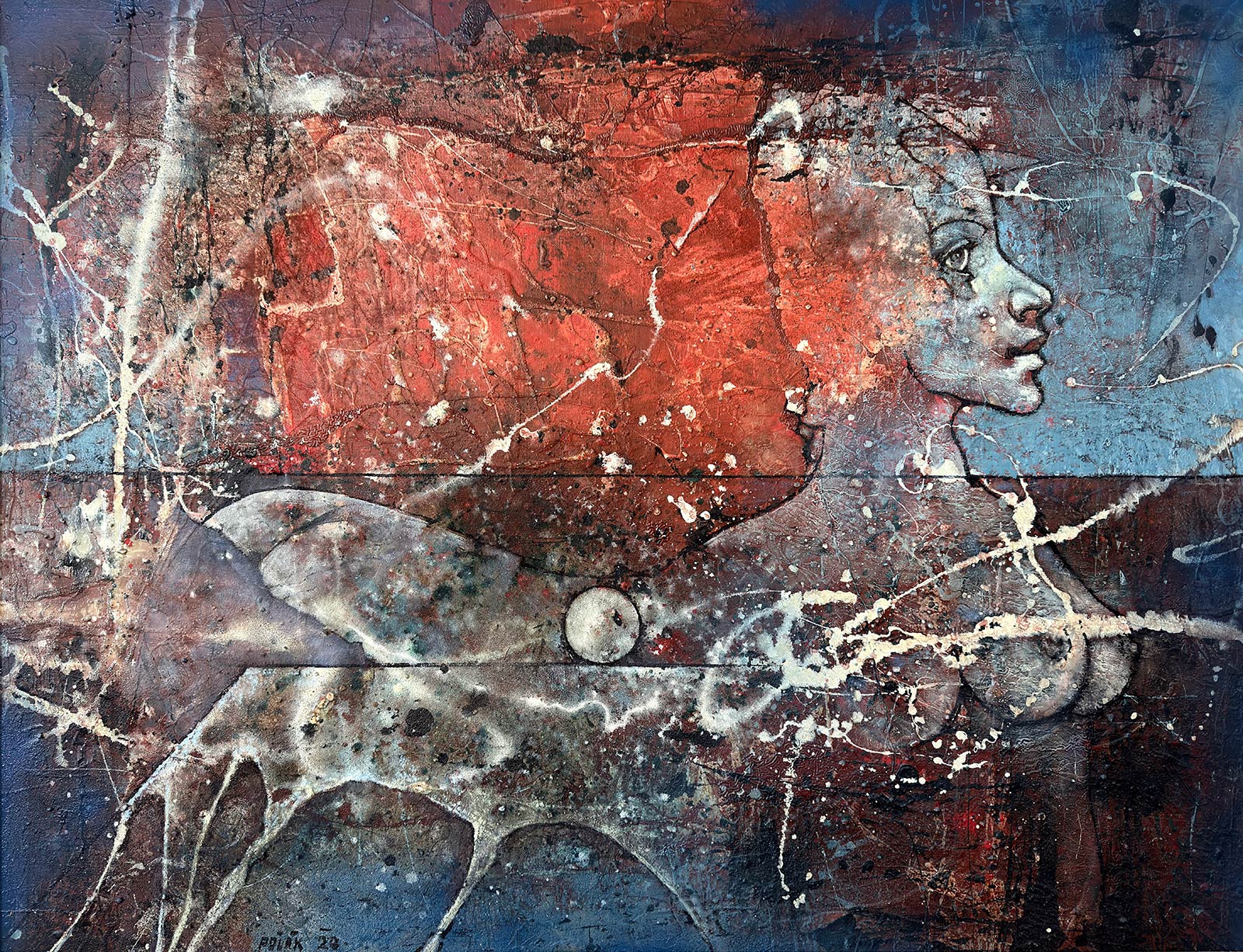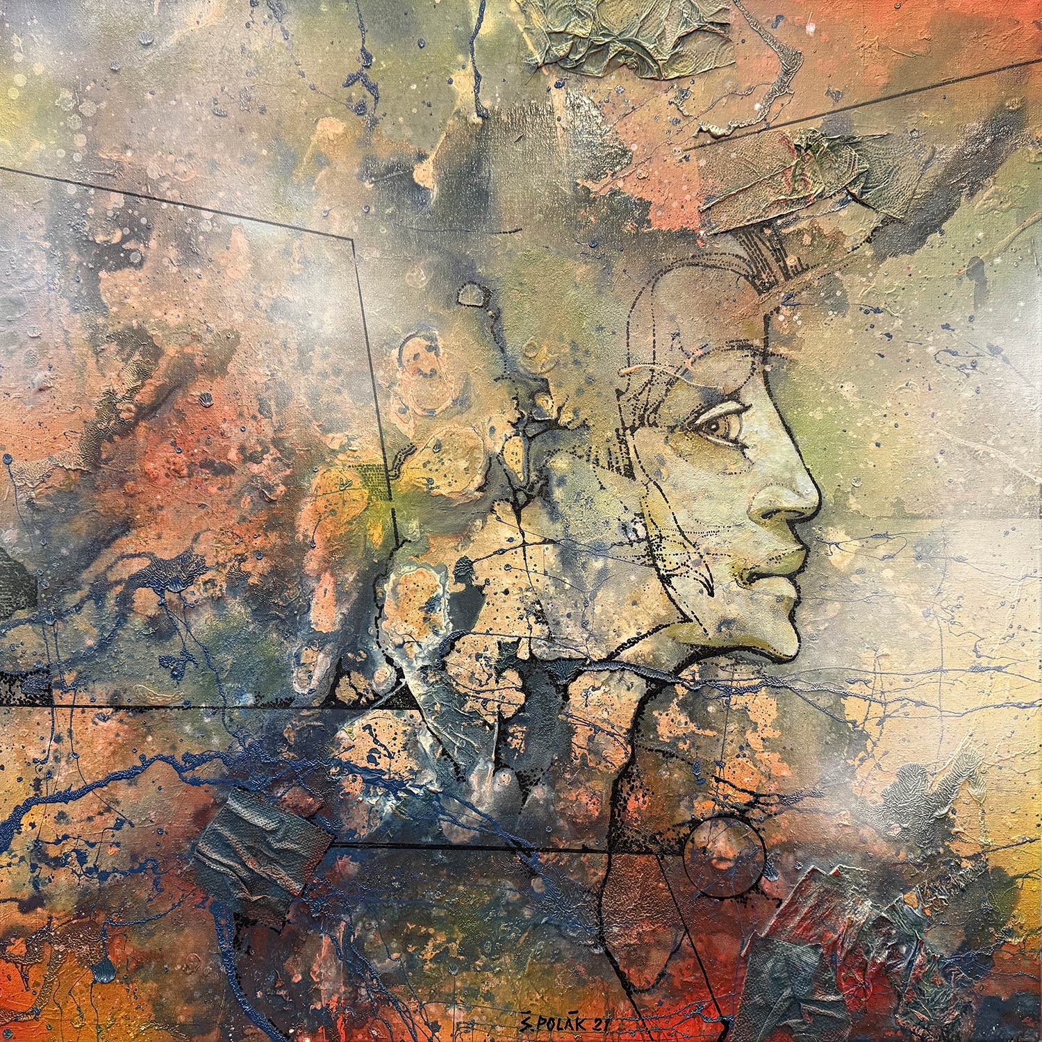 105. Čo sa v nás deje..., 2021, akryl-olej, 82 cm x 100 cm