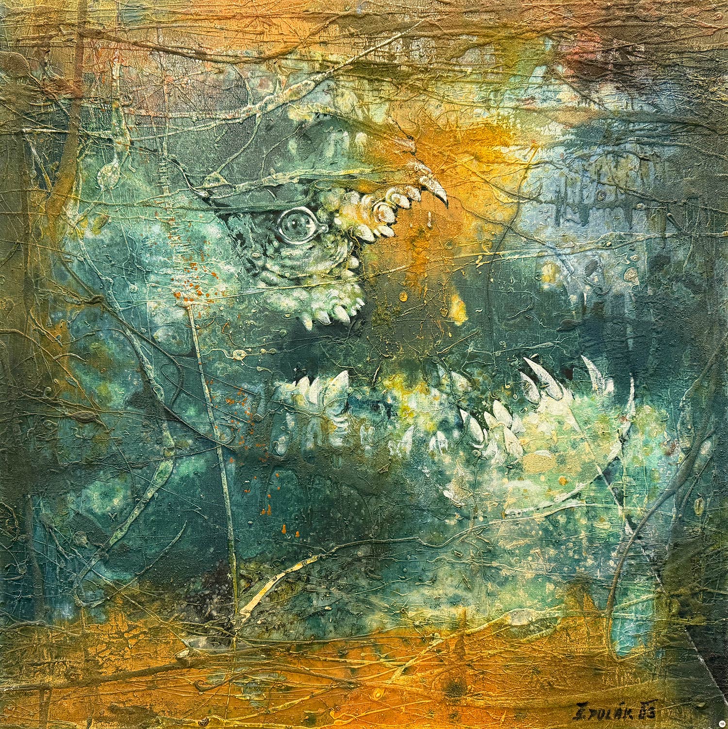 140. Hlavozubec a jeho posledný mliečny zub, 2003, akryl-olej, 90 cm x 90 cm