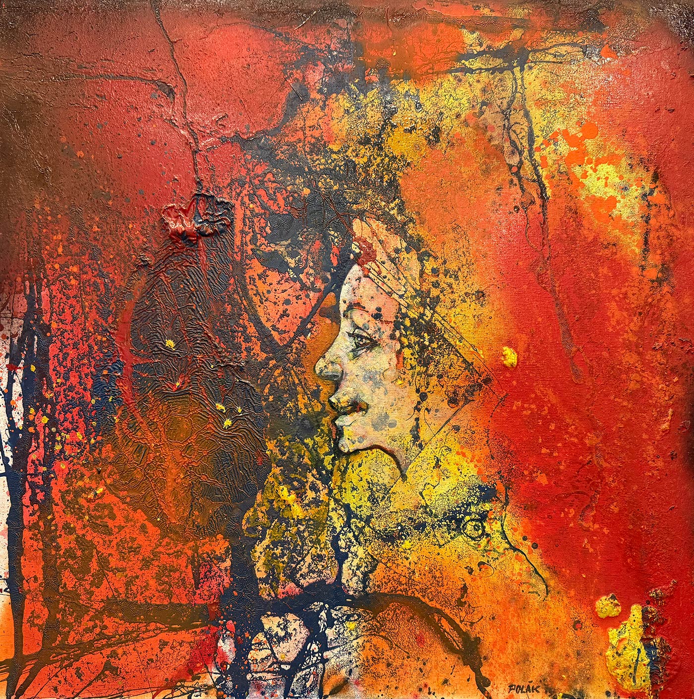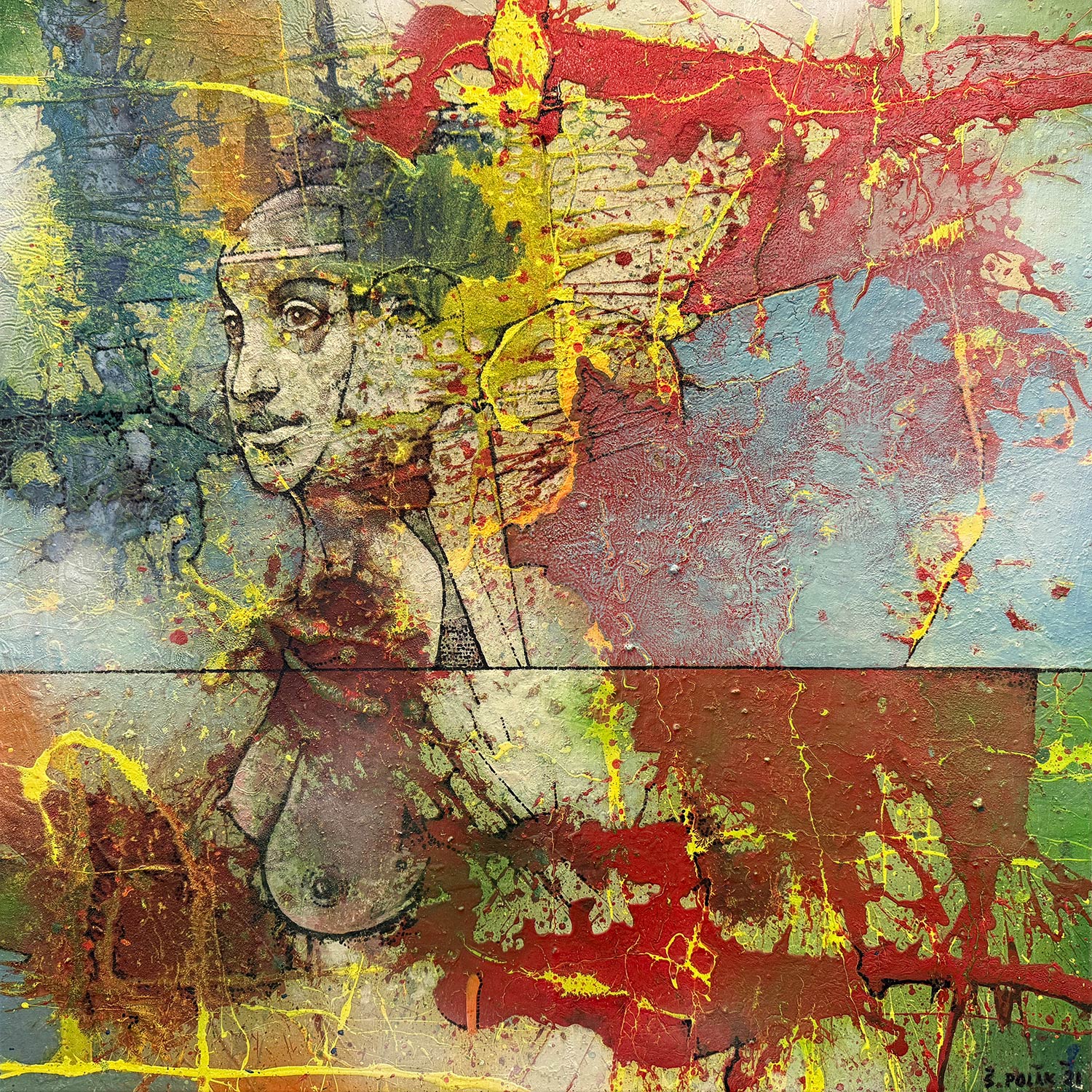 149. Prišla nečakane, 2017, akryl-olej, 90 cm x 90 cm