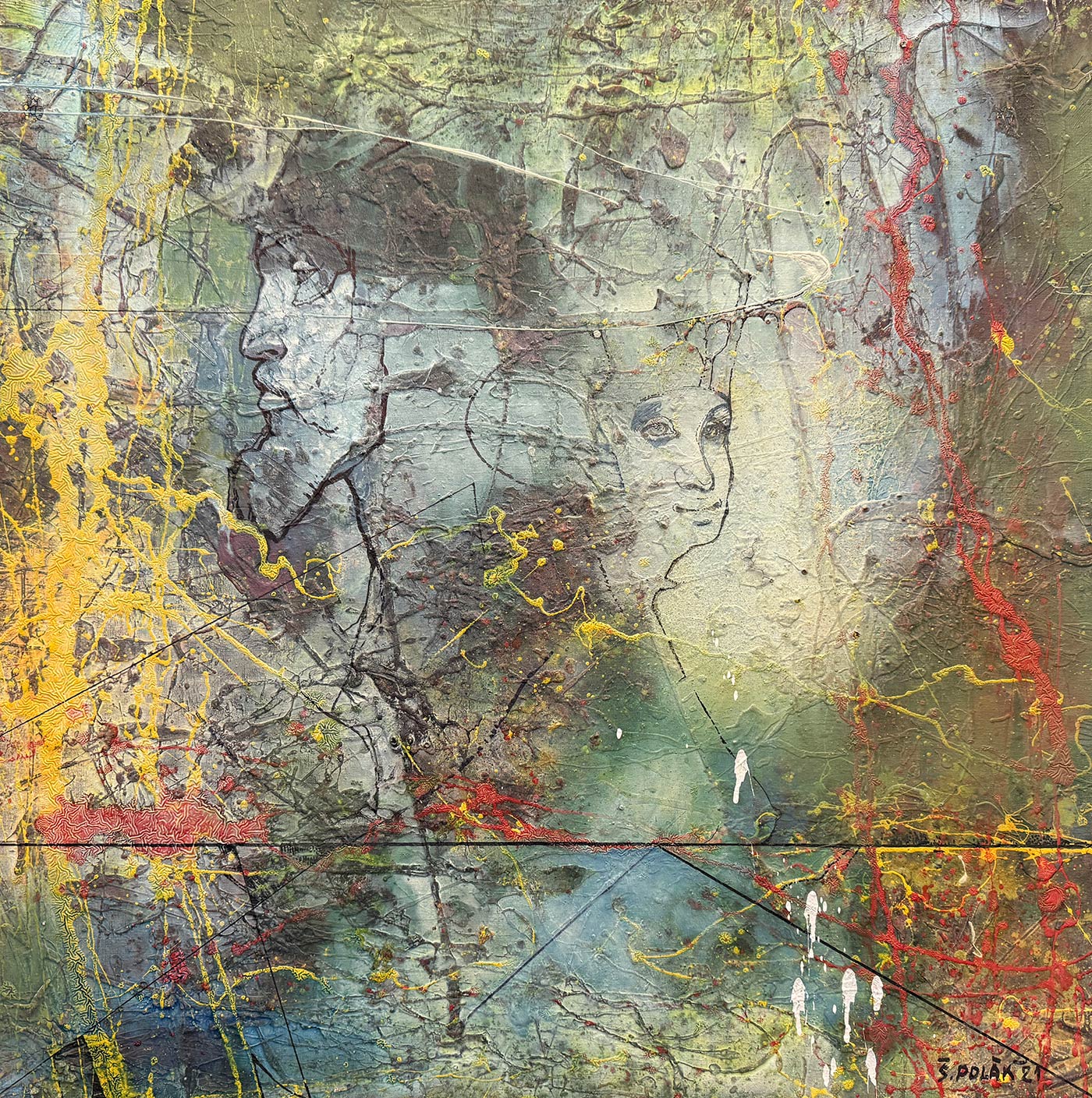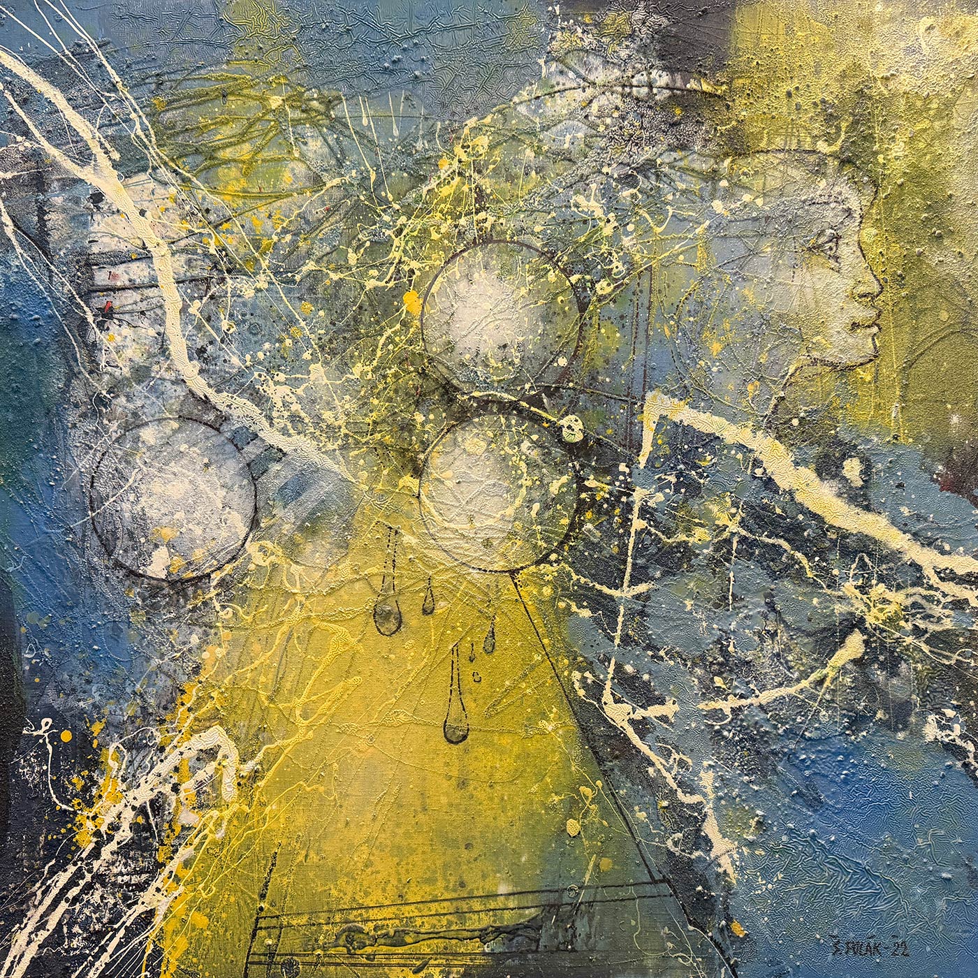 153. Spomienka II., 2021, akryl-olej, 90 cm x 90 cm
