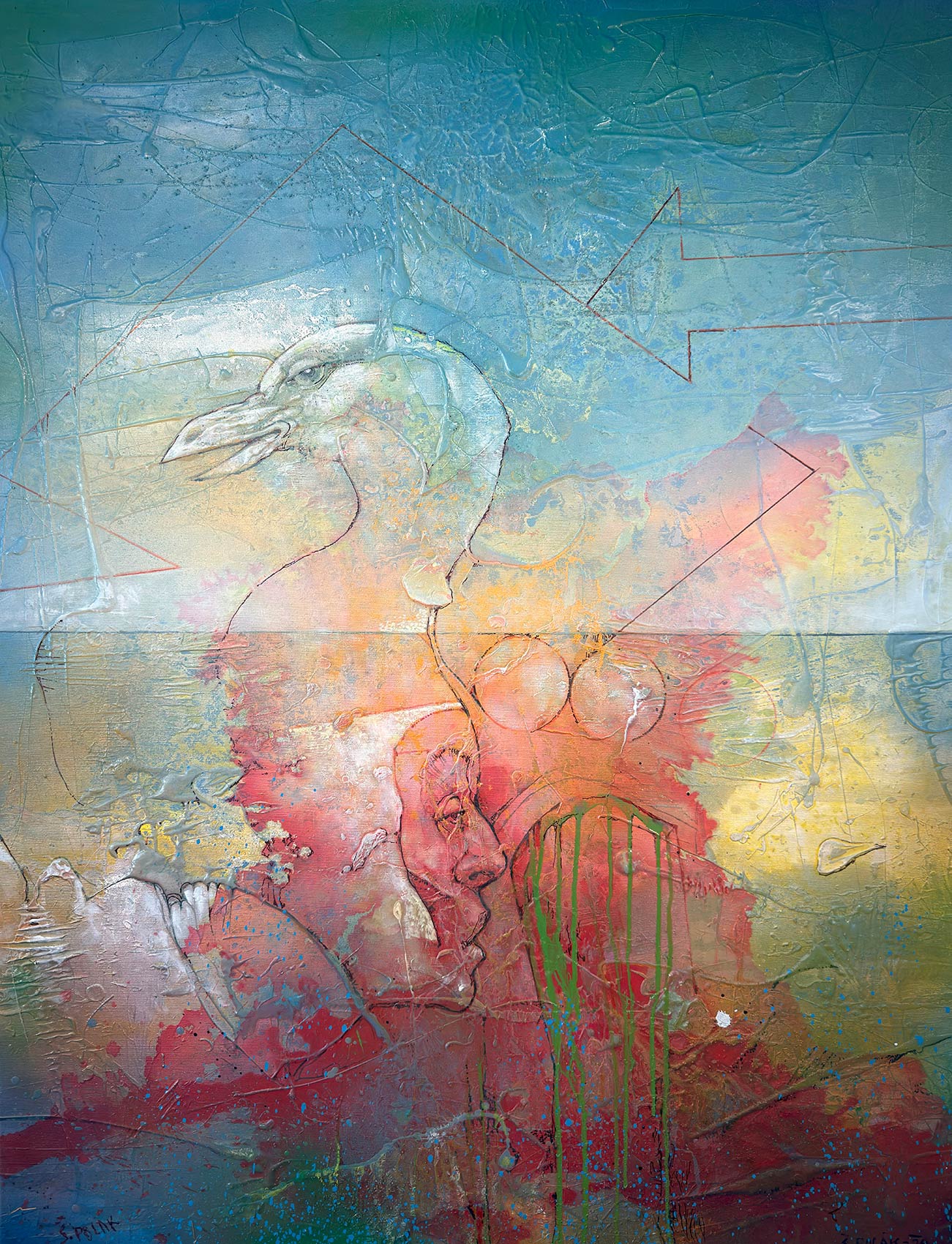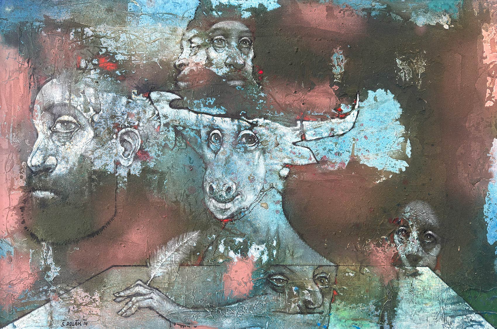 36. Priatelia z mojich snov, 2014, akryl-olej, 150 cm x 100 cm